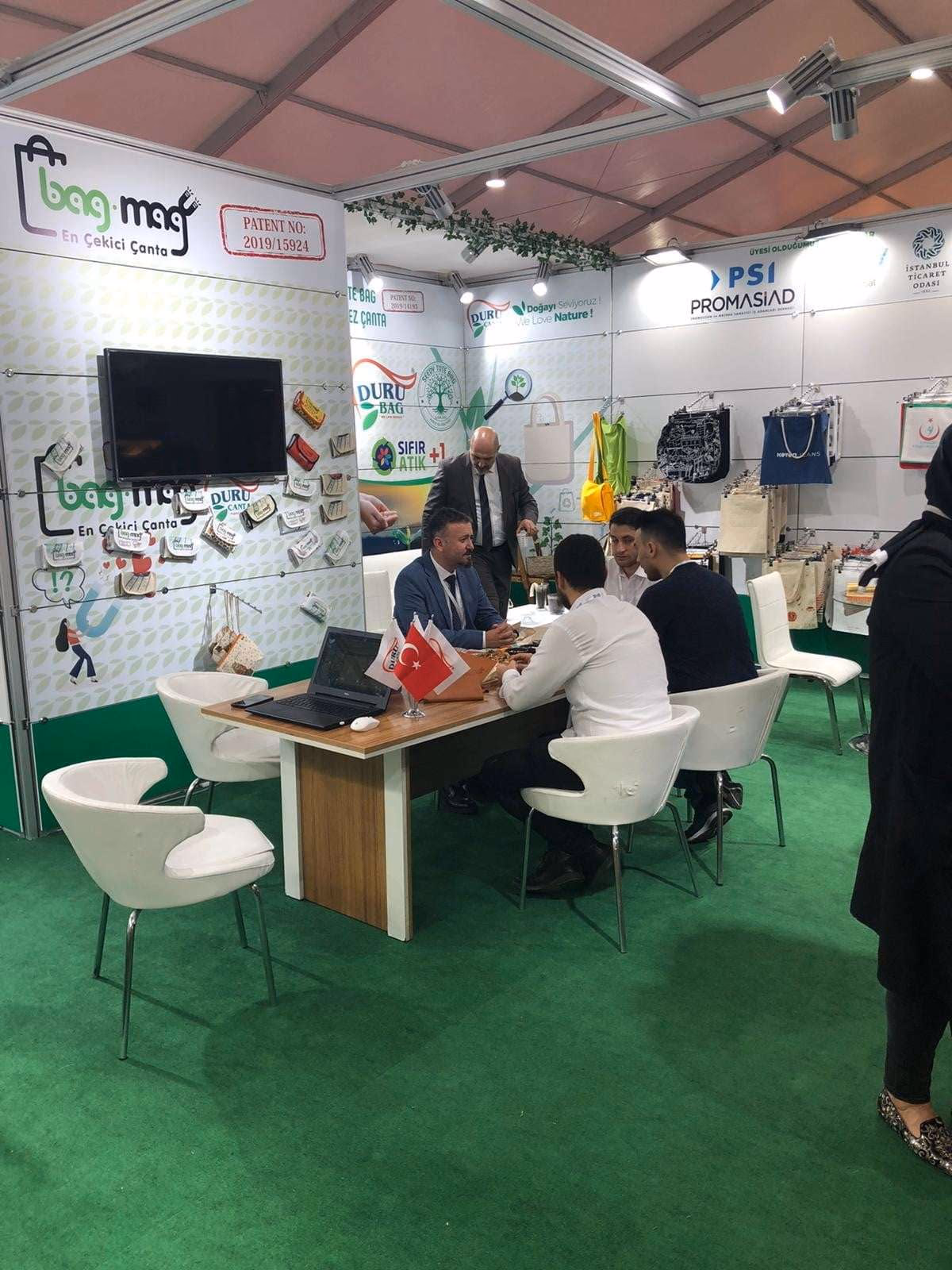 Tohumlu bez çanta ve mıknatıslı bez çanta projelerimiz için bayilik tekliflerinin yanı sıra aynı zamanda sipariş alma heyecanını yaşadık. Farkındalık yaratan ürünlerin yaratıcısı olmak ve bu ürünleri pazarda hak ettiği yerlerde sunmak elbette yılların getirdiği önemli bir tecrübe ve sıkı bir organizasyonun eseridir. Fuarda standımıza gelerek ve gerekse arayarak bizlerin destekçisi olan tüm dostlarımıza tekrar teşekkür ederiz.